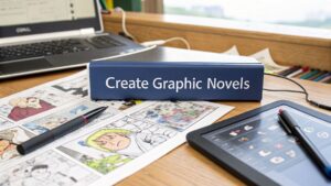 Learn how to create graphic novels with this complete guide. Covers everything from scriptwriting and art to printing and global marketing with BarkerBooks.