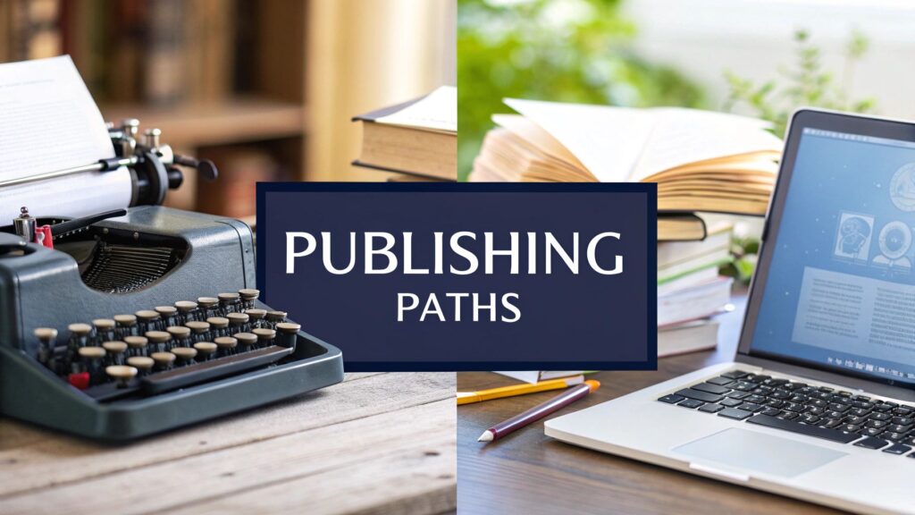 Ultimately, both routes are completely valid ways to build a career. In fact, many successful authors now have hybrid careers, using both models for different books. For a closer look at the steps involved, check out our guide on how to become a published author. As we dig deeper into this comparison, you’ll get the clarity you need to pick the right direction for your manuscript.